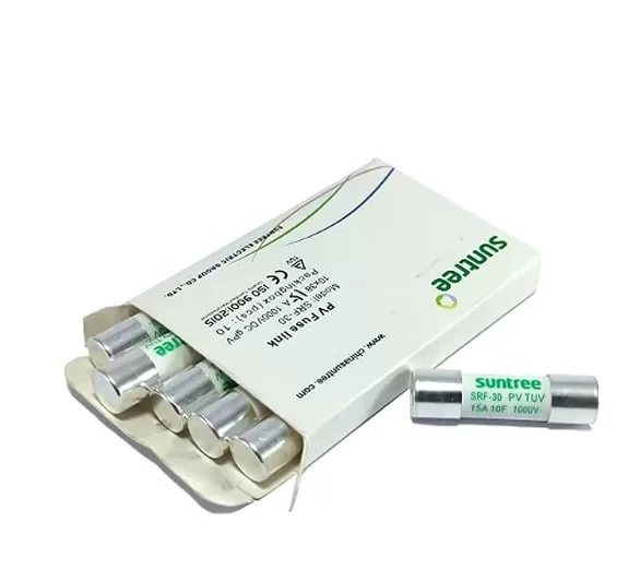 فیوز 20 آمپر gpv برند Suntree که برای حفاظت از استرینگ های نیروگاه خورشیدی است. این فیوز ها به طور معمول در تابلو DC نیروگاه خورشیدی و قبل از اینورتر و شارژکنترلر قرار می گیرند. عملکرد و کیفیت پایه نگه دارنده فیوز دو پل برند Suntree تاثیر بسیار بالایی در عملکرد صحیح فیوز دارد. فیوزها یکی از سری محصولاتی برند Suntree هستند که با کیفیت‌های بازار به حساب می‌آید. Suntree در کنار محصولات خو پایه فیوز استانداردی را نیز تولید می‌کند که به گونه ای طراحی شده‌اند که در تعداد دفعات قطع و وصل بالا آسیب ندیده و همچنین به دلیل نوع طراحی آنها، میزان آرک ناشی از قطع جریان رشته پنل‌ها به حداقل می‌رساند.