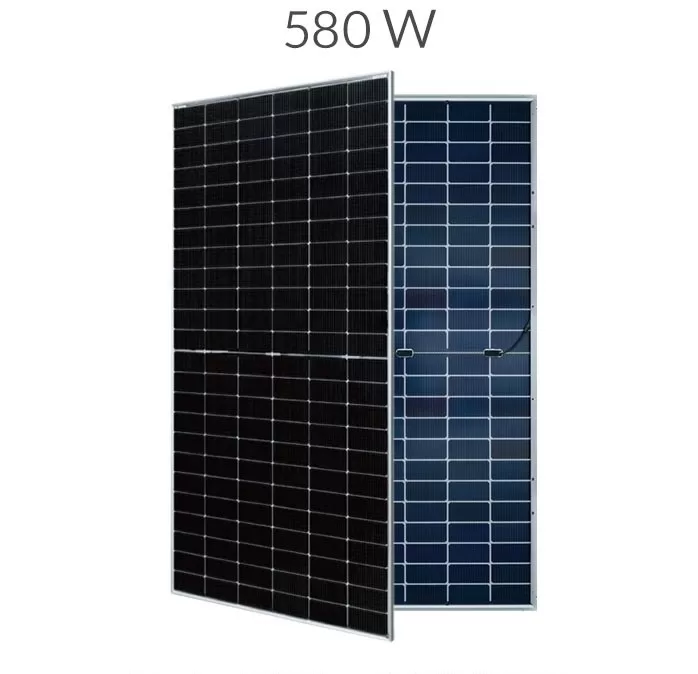 توان نامی (Nominal Power): 580 وات (در شرایط استاندارد STC: تابش 1000 وات بر متر مربع، دمای 25 درجه سانتیگراد)